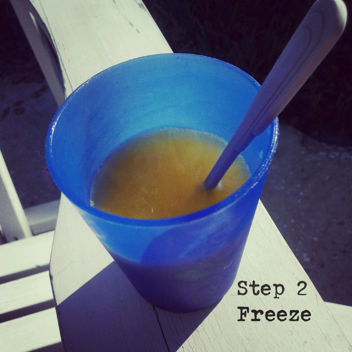 At home we have a nifty popsicle maker thingy, but we are on vacation this week and I had to improvise.